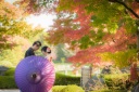 椿のお花をバックに素敵です(^^)11月後半は椿のお花とお写真が撮れます♪