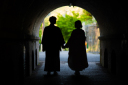新婦さんが新郎さんを見つめながら、ふたりで歩くロマンチックなひととき~
