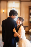 新婦が新郎にぴったり寄り添う姿がとても可愛い^^これからずっと、新郎さんが新婦さんを守っていくんですね。