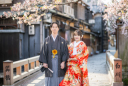 桜が咲く小道で、和傘を持っているおふたり〜〜〜〜〜