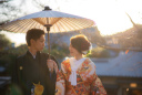とっても仲良しなお二人の様子が秋の黄色い紅葉の背景にぴったりで楽しい撮影となりました。たくさんの小物と季節感のある写真がお二人のこれからを更に楽しいものにできますと嬉しいです。