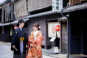 新郎様が新婦様をエスコート、京都らしさの背景が素敵ですね!