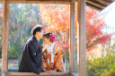紅葉の絨毯と紅白の婚礼衣装が映え、さらにお二人の楽しそうな雰囲気がより一層写真を想い出深い1枚にしてくれます。