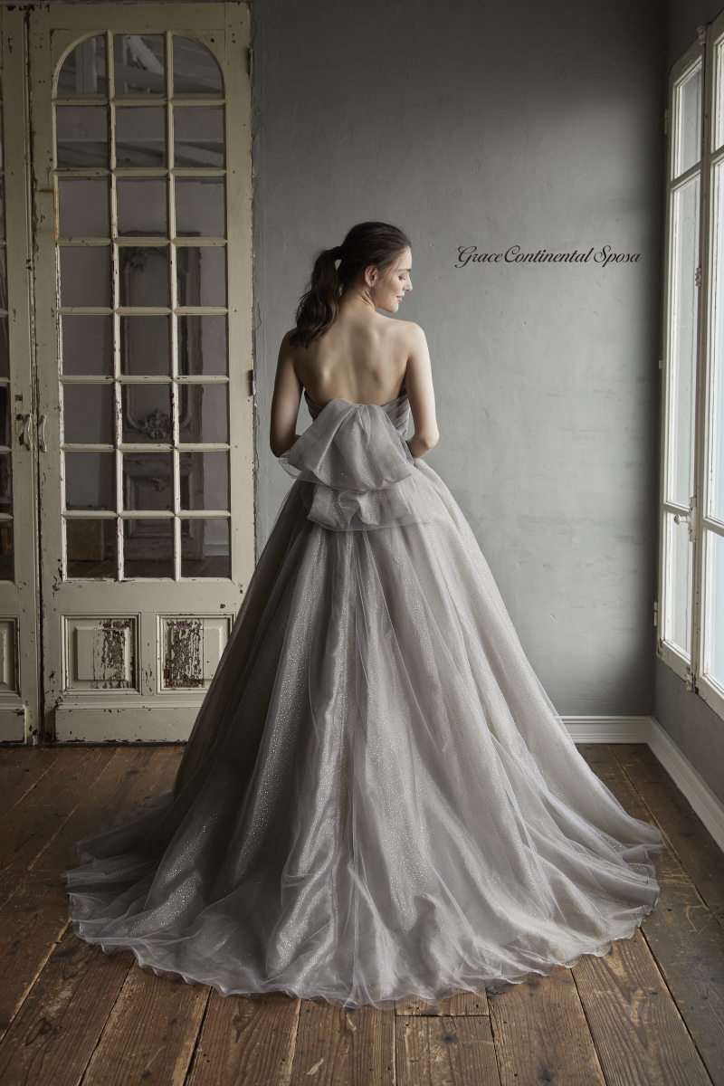 キラキララメが散りばめられたスカートがお洒落な雰囲気に。バックリボンは取り外しが可能です。