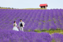 羊ヶ丘展望台の広大な緑の中で。和装がとても映えますよ♪