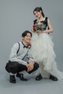 かっこいい構図やポージングを決めた写真もいいけど、大好きな愛犬と一緒に写る自然な笑顔の写真が、お二人だからこそ撮れる素敵な1枚になりました!