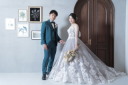 さわやかなブルーのドレスとホワイトのおしゃれなタキシードがとってもお似合いです!