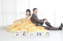 カラードレス&タキシード姿もとってもお似合いのおふたり。スタジオには色んな背景も用意してます!