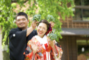お色直しをご希望されていた花嫁様。白無垢姿から、一転して艶やかなお姿に。ご家族と一緒にロケーションフォトのスタートです。