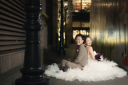東京駅前のオレンジ色のライトアップがお二人を灯すショット