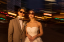 サングラスもお持込みの多い小物のひとつ。お揃いのサングラスで、スタイリッシュなポージンングでキメました。小道具のお持ち込みは自由。お二人らしくスタイリング可能♪