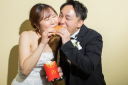 お持ち込み小物のサングラスをかけて、見つめ合って。タキシードとウェディングドレスをカジュアルダウンして、ストリートフォト風のクールでお洒落な一枚に仕上げました。