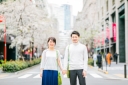 赤色と紺色の番傘で撮影♪二人の仲良しカットでおでこコツン♪