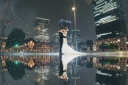 街灯の下で新婦のソロショット。こちらはかわいく写っています。