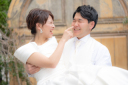 明るくて楽しいショットだけでなく、雰囲気を変えてチャペルのドアを背景に、こんなおしゃれなお写真も残せます!