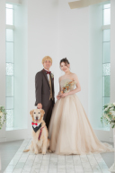愛犬のワンちゃんも赤い着物に着替えてみんなで一緒に和装撮影♫