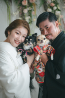 ご撮影の途中で綿帽子を外します。胡蝶蘭や金箔水引でとても華やかですね♪