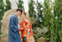 ご新郎様も紺色の紋服がとてもお似合い!黒のお色よりカジュアルな印象になります