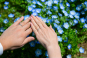 ネモフィラが一面に咲く風景の中、並んで座るおふたりの姿。広がる青と自然な距離感が、柔らかな空気を感じさせます。