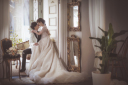 後ろ姿だって残しておきたいですよね^^透け感のあるグローブはこのドレスによく合いますね