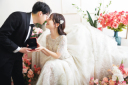 ファーストスタジオで半袖のボリュームドレスに着替え韓国感溢れるかわいらしい印象に♡また、こちらのセットは二つのアーチから幻想的な光が差し込み大人っぽショットに