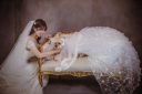 ふわふわのボリュームドレスの隙間を埋めるように沢山のお花を置き、美しさ全開の主役級のショットに♡♡しっかり脚を見せることでより細く長く見せることができます◎
