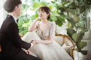 ドレス3着目は袖付きのボリュームドレスでやわらかい印象になりましたね♡後ろの緑は現在ございませんが、こちらに近づけたお写真を撮影することが可能でございます◎