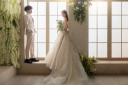 まずはスンススタジオから撮影です!白背景の横には大きな白いアーチがあり、お花や緑と一緒に撮影ができます。段差があるので、座ったりとポージングもたくさんあります!