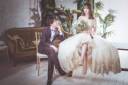 新郎様の身長が収まるほどの、トレーンの長いドレスで上から撮影をすると、ダイナミックに!