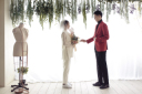 ドレスのリボンをなびかせて、風が吹いて気持ちの良い印象のお写真に♪