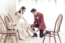 大きな白いお花に囲まれ、バックハグシーン!お互い見つめ合おうとする顔の角度に愛を感じます♡