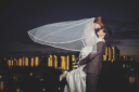 ソファーに座って、ベーエルを被り幻想的なお写真に!新婦様が新郎様にもたれかかるように腕を組んでいる姿が素敵です!