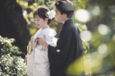 お二人が座っているだけでも、ピンクのお花と撮影すれば特別な一枚に♡