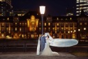 マーメイドドレスとブルーのスーツで撮影スタート!定番のシンデレラポーズから♡