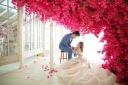 最後はピンクのウェディングスーツでカジュアル撮影!アイテムを使って海外の雑誌のような格好いい一枚に♡
