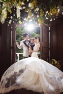 扉前でのベールシーン♡シャンデリアやお花に囲まれながら迫力のある一枚です!