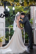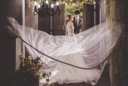 カジュアルの次はボリュームドレスにお着替え!長いトレーンを生かしたショットです。カメラを構えるご新郎様のポージングもご新婦様への愛が伝わってきますね^ ^