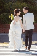 ご新婦様のドレスをご新郎様が持ちながら楽しそうに歩くお二人の表情がとても可愛いワンカット!とても自然な表情ですね♪