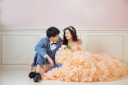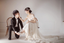 ボリュームドレスがとってもかわいくなるソファーシーン!ご新婦様の手にキスをするご新郎様はまるで王子様のようですね!