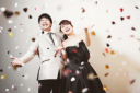 今度はお二人でソファーに座ってのショット!背景の黒色とライトも相まってかっこいい1枚になりましたね☆