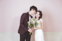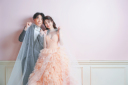 ピンクの壁のセットでは一緒にベールを持ちながら遊んでいる様な自然な雰囲気で撮影しました!