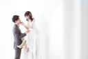 次はご新郎様も一緒に撮影!少し離れているところで見つめ合うお二人がとっても素敵ですね♬