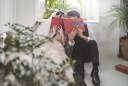 ドレスを大きく広げて下に座るショット!おひざの上で眠るご新婦様がかわいいです♡