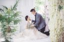 ご新婦様がご新郎様のお膝の上に乗ってお鼻をグッと近づけるお二人♡