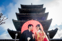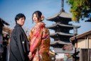 八坂の塔の真下で手を取り合って歩くお二人はとても美しいでね!下からのショットなので八坂の塔も迫力ある姿で圧倒されてしまいます!