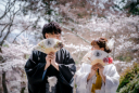 満開の桜を背景に。和装を合わさって落ち着いた雰囲気も素敵です…♡
