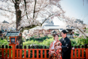 映画のセットのような京都の風景をバックにプロポーズショット♡