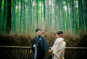 長く続く幻想的な竹林の世界にお二人の姿が眩しく光ります!柄が大きく見える後ろ姿で美しい世界観を引き出してくれてますね!!