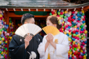 八坂の塔の真下まで来るとすごい迫力ですね!新郎新婦様の衣装もしっかり引き立ち美しいです!新婦様は金小物を付けることによってより華やかになります!