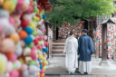 ベールの使い方は自由自在。お二人で中に入っていただき、柔らかい空間に囲まれてみるのも素敵ですね。